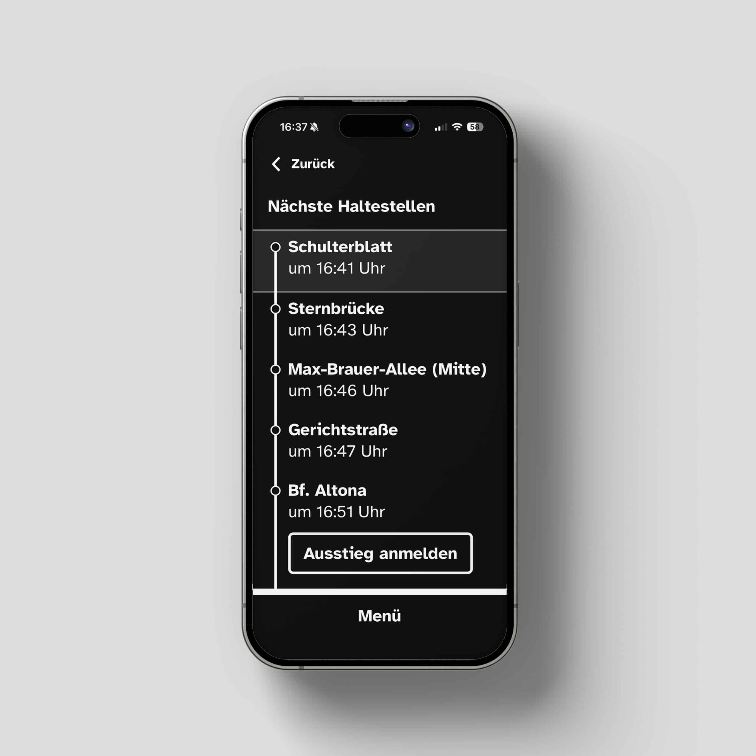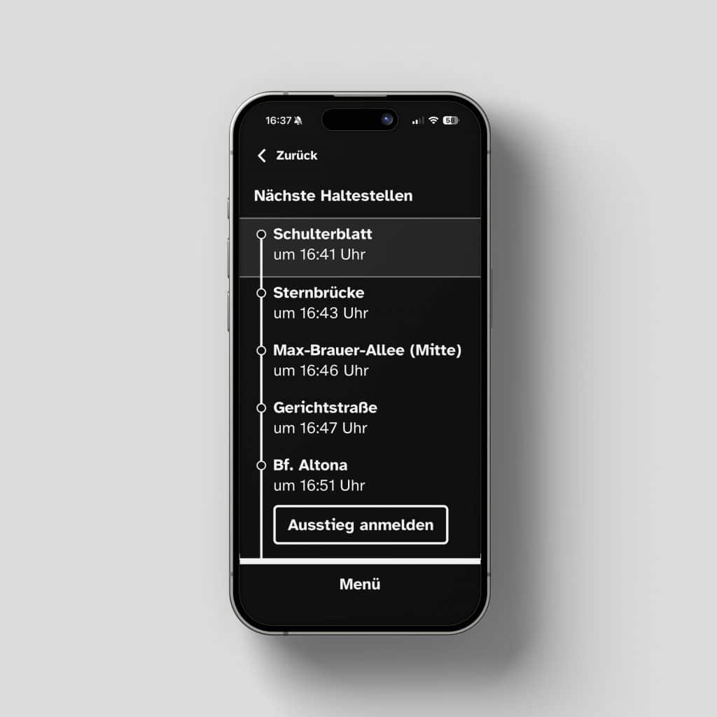 Das Ziel: Die App soll auf allen Bussen, Zügen und Fähren im Hamburger Verkehrsverbund implementiert werden. Und es werden neben erweiterten Features auch neue Systeme einbezogen, um die Barrierefreiheit für seh- und höreingeschränkte Fahrgäste im hvv weiter zu erhöhen.