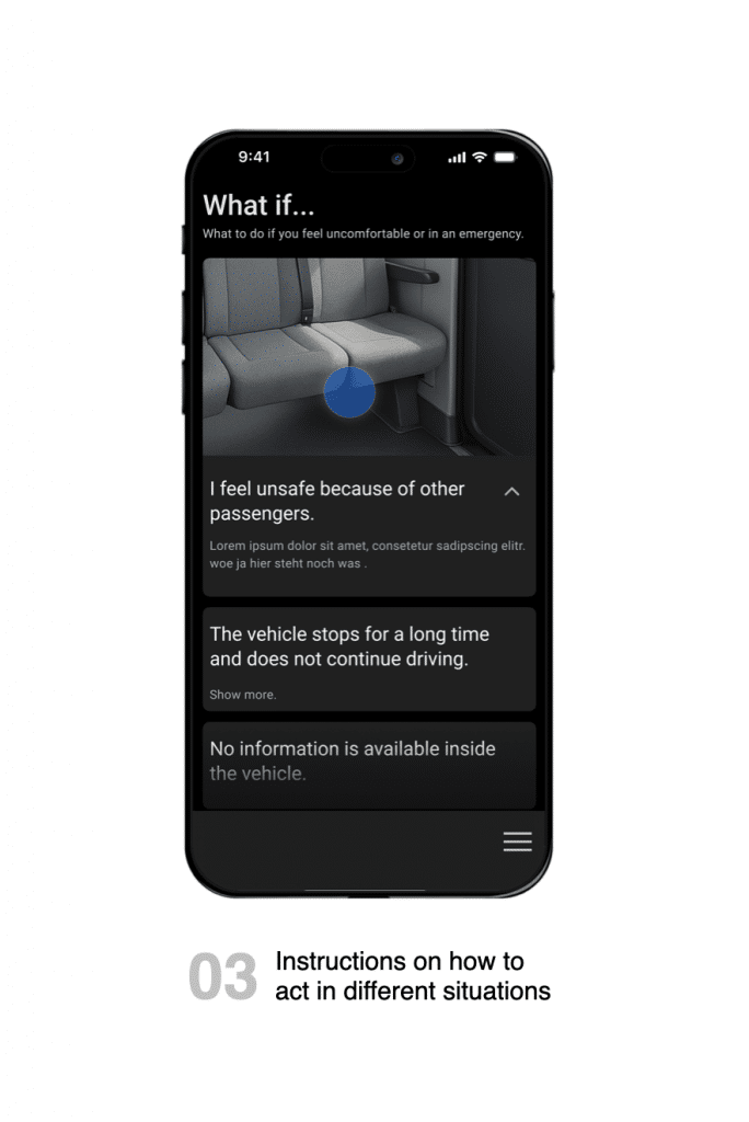 In Gesprächen mit Vertreter*innen der Zielgruppe zu autonomen On-Demand Services haben wir viel zu den zentralen Hürden in der Nutzung erfahren. Eins der Probleme hat dabei besonderes Interesse bei uns geweckt: Neurodivergenten Menschen fehlt die Möglichkeit der Vorbereitung auf die Nutzung für sie unbekannter Mobilitätsangebote.